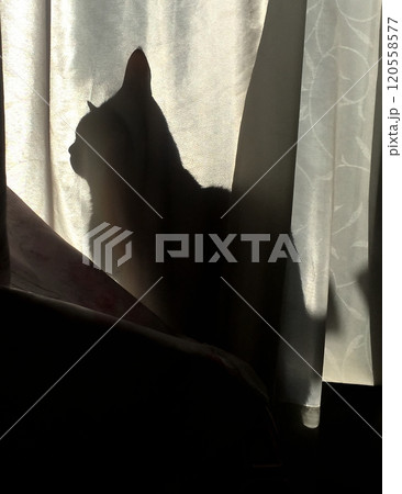 陽の当たる場所でひなたぼっこする猫のシルエット