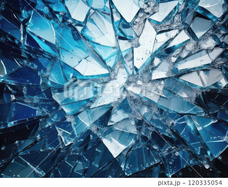 硝子のが割れた瞬間と破片ストップモーション写真風