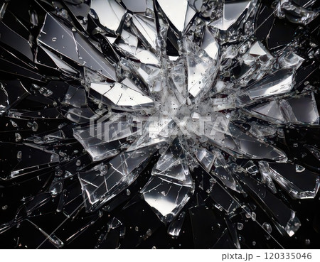 ガラスが粉々に割れた瞬間のモーションテクスチャ風黒背景色