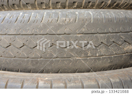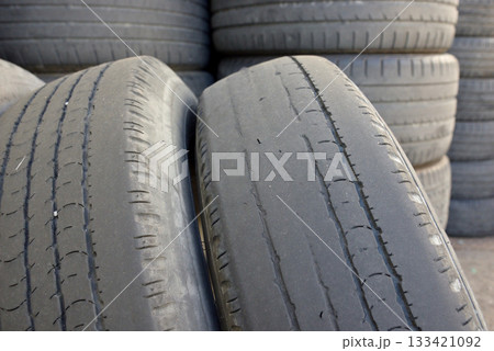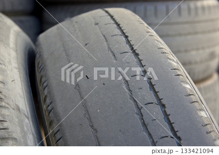 摩耗 スリップサイン ひび割れた 廃棄タイヤの山