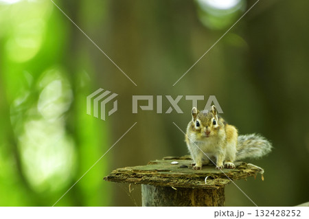 杭の上で餌を食べるシマリス