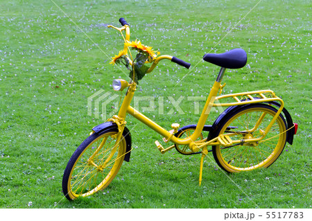 Old yellow bicycle with sunflowers.