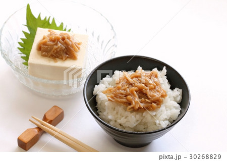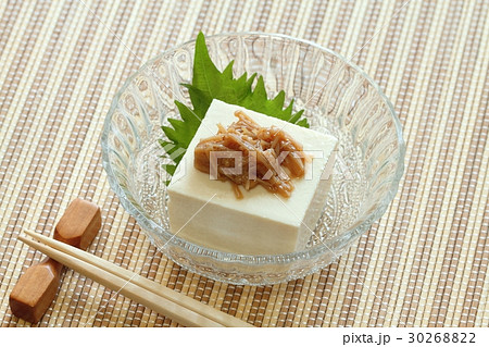 なめ茸冷奴。夏の日本酒(冷酒)のおつまみイメージ。