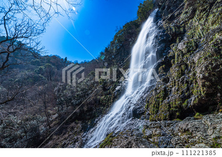 【日本の滝百選】天滝 滝口と青空1 兵庫県養父市