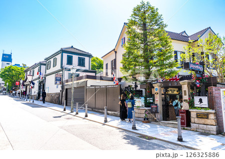 【重要伝統的建造物群保存地区】北野町山本通 北野通りの英国館とベンの家2の風景 兵庫県神戸市中央区