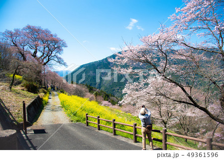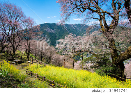 ひょうたん桜 樹齢500年 高知県仁淀川町 桜地区 青空 菜の花