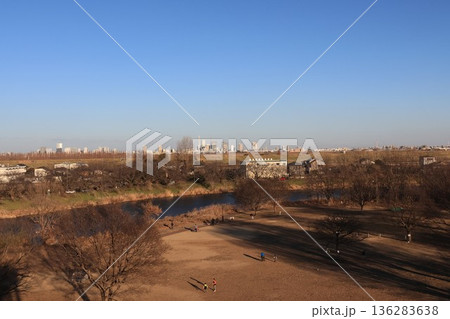 埼玉県富士見市 びん沼自然公園の桜並木と菜の花