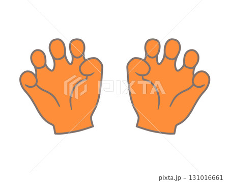 手のイラスト「がおー!」オレンジ