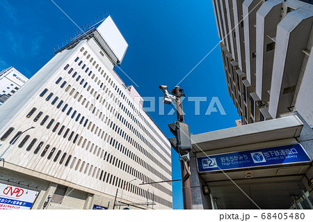 日本の横浜都市景観 桜木町駅前。野毛ちかみち、横浜市営地下鉄ブルーラインの「地下鉄連絡口」などを望む