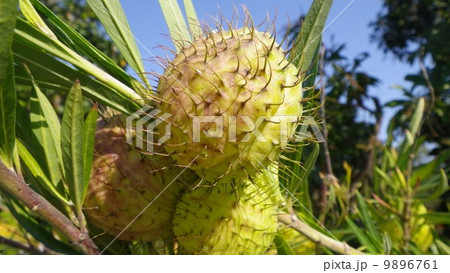 黄緑色のフウセントウワタの実(秋、十一月)