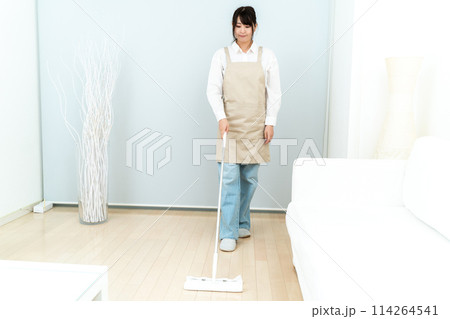 掃除をする若い主婦