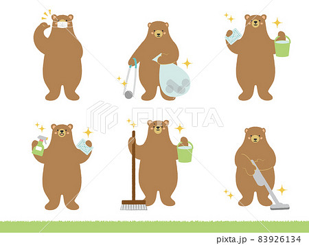 清掃員・掃除・マスクのスタッフセット【くまさんシリーズ】