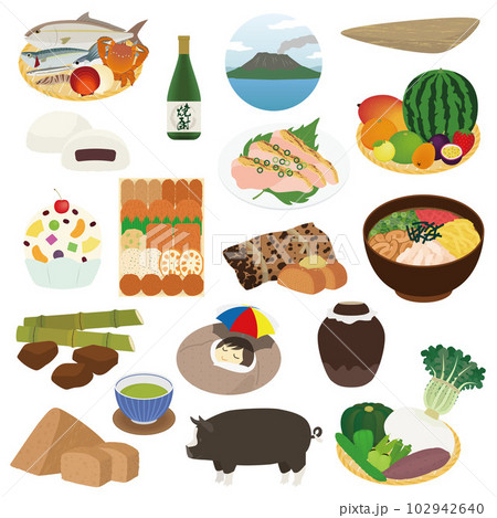 鹿児島の名物のイラストセット