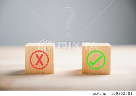 Wooden blocks illustrate the yes or no choice concept portraying business and lifestyle ideas. Decision-making process highlighted. Think With Yes Or No Choice.