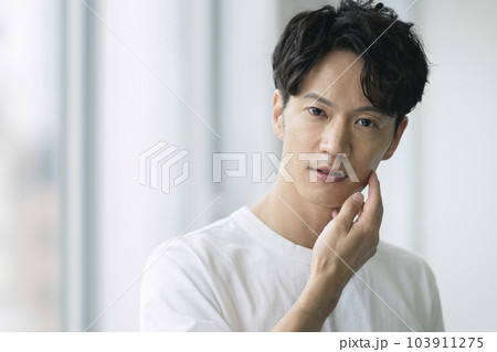 カメラ目線の30代の男性 メンズビューティーイメージ ポートレート