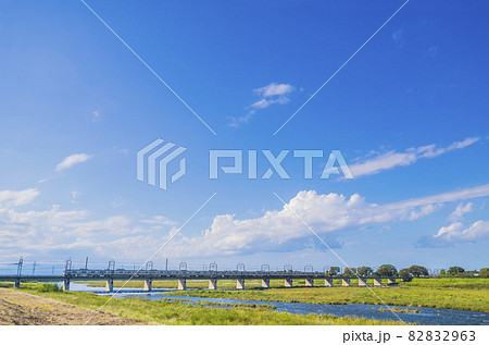 京王線 聖蹟桜ヶ丘 多摩川橋梁 電車 青空 多摩川