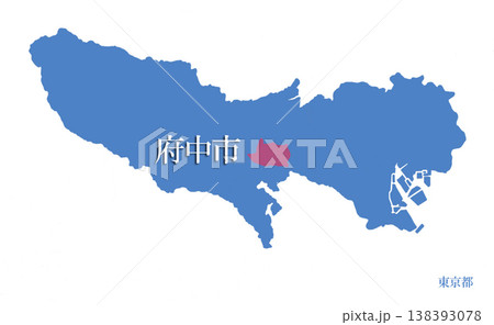 東京都の市町村 23区は別色 府中市 ふちゅうし