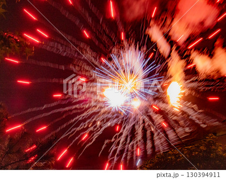 懐かしい夏、校庭に座ってみた神社の花火 Traditional Fireworks