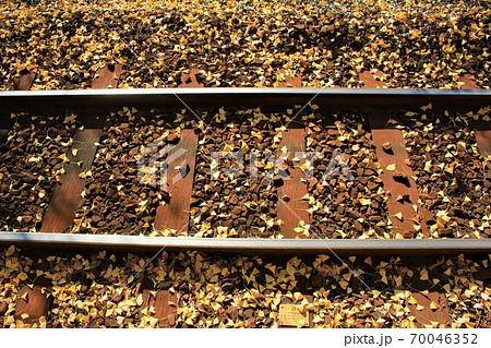 イチョウの落葉と線路