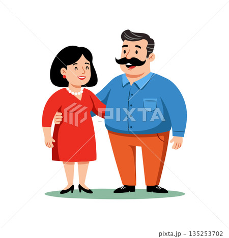 Middle aged couple standing close together with smiling faces in casual clothing vector illustration
