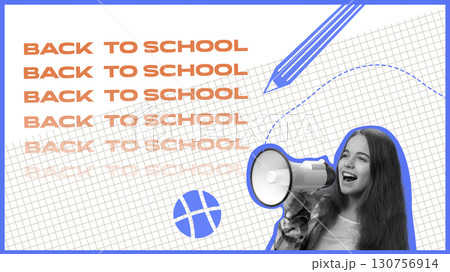 Student enthusiastically promotes back to school spirit with a megaphone at a school event in a colorful setting
