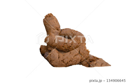 brown defecate animal, dog excrement with clipping path isolated on white background, close-up poop.