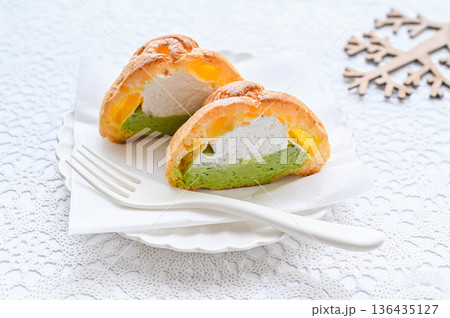抹茶とホイップクリームのシュークリーム