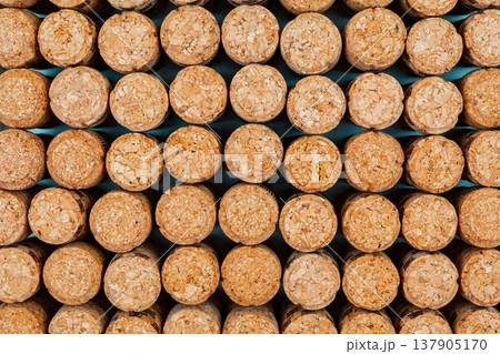 Background from textured wine corks, top view. place for text