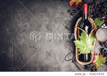 Wine composition on dark rustic background