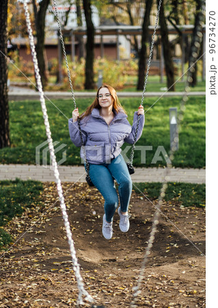 Cute girl having fun with swing in the park.