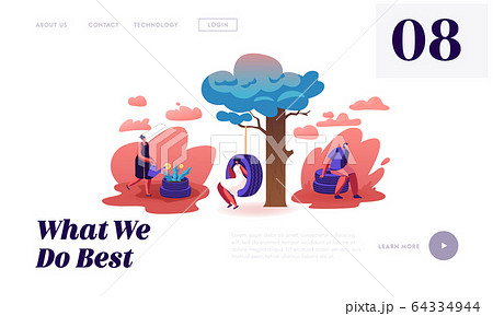 Ideas for Reuse Old Car Tyres Website Landing Page. Male and Female Characters Using Tires for Making Garden Flower Bed
