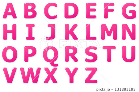 ピンクのぷっくりツヤツヤした大文字アルファベットのイラストセット