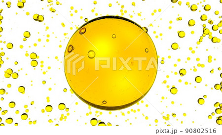 3d oil bubbles isolated. Golden yellow oil liquid drops on empty white background.