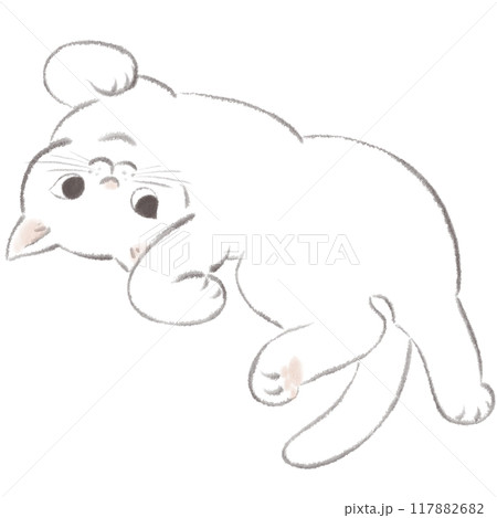 仰向けになっている猫のイラスト素材 白黒