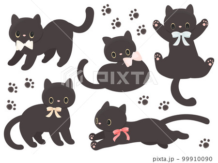 いろいろなリボン猫と足跡セット