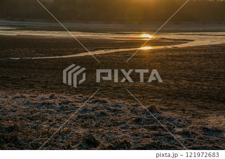 京都市右京区の冬の広沢池を早朝に撮影したもの