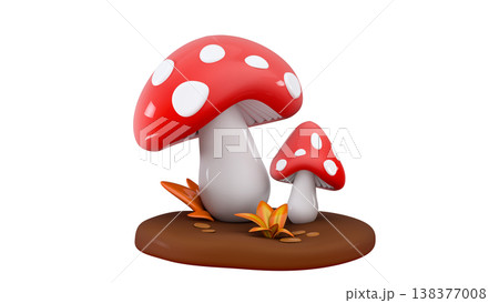 3D mushroom clearing Fly agarics in meadow Two toadstools in glade Cute fantasy or fairy fly agaric
