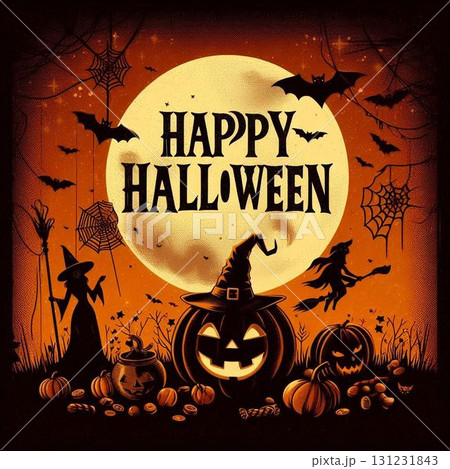 満月に舞う魔女とジャック・オ・ランタンが彩る、クラシックなハロウィン背景