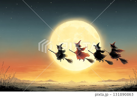 満月の前を横切る4人の魔女