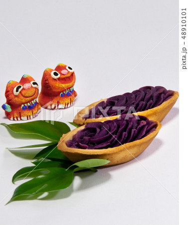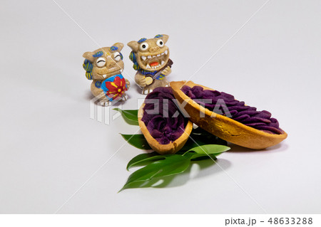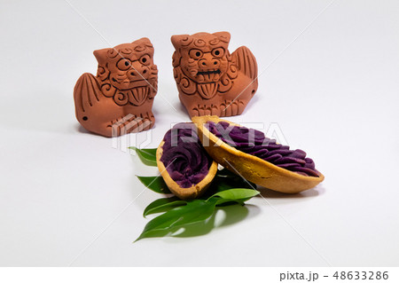 シーサーと沖縄のお菓子とモンステラ