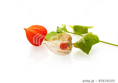 Physalis alkekengi isolated on white background. Branches of Chinese Lantern