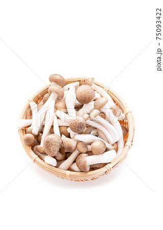 ザルに入った しめじとほぐしぶなしめじ【白背景】