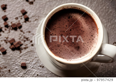 暖かく美味しそうなココアの入った赤いマグカップの手描き水彩イラスト