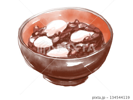 美味しそうな粒あんたっぷりの白玉ぜんざいの手描き水彩イラスト