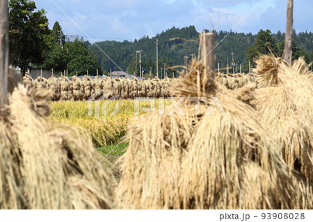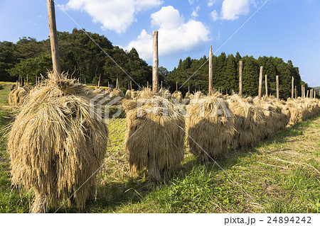 岩手 奥州市 収穫時期の田園風景と稲わら干し(ほんにょ)