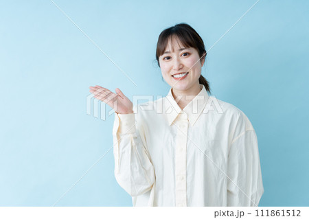 カラフルな背景で撮影をした若い女性のカジュアルなポートレート