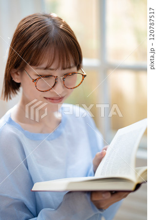 赤い背景の前で正面を見つめるボブヘアーで眼鏡の日本人女性