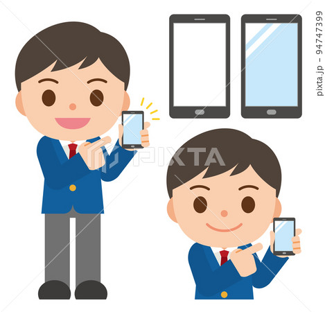 タブレットを使用して授業を受ける生徒たちのベクターイラストセット。