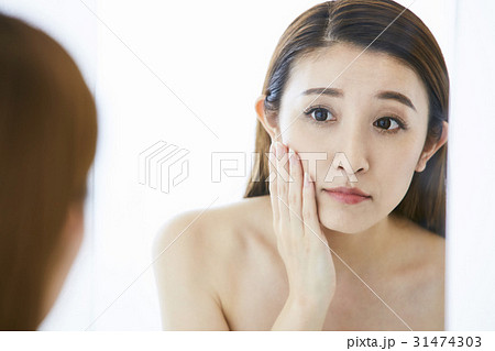 すっぴん ノーメイク しみ、そばかす、ほうれい線に悩む女性