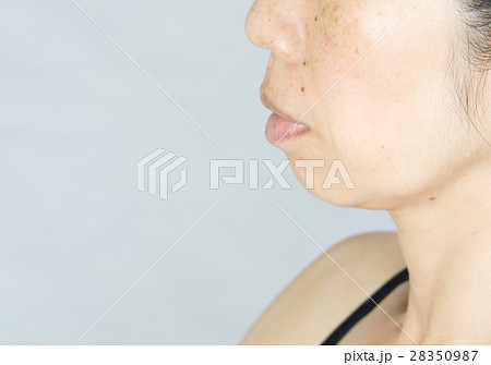 すっぴん ノーメイク しみ、そばかす、ほうれい線に悩む中年女性
